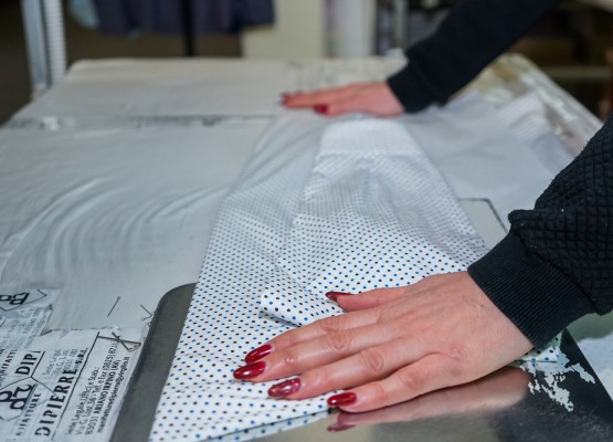 Our staff, the machines we use, the rigorous attention to finishes through a scrupulous control of details, allow our company to get the best in terms of quality of the product. Our workshops are equipped with modern machineries: all stages of production take place through the use of advanced technologies, from cutting to sewing machines, up to ironing. Semi-automatic cutting we use is one of the most common materials processing techniques, in particular for compact cottons. Thanks to continuous investments in the latest technology we are able to fulfill orders of the most demanding customers.